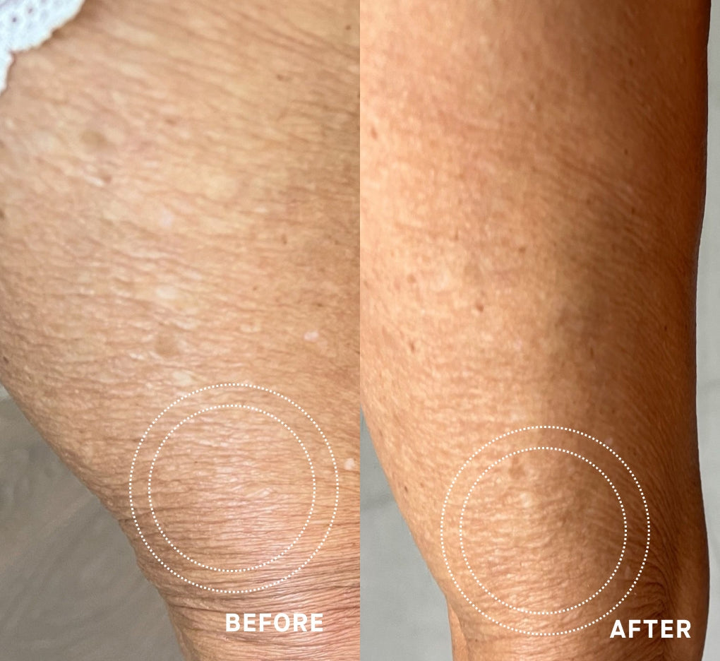 “The skin on my legs was starting to look older, dry and crepey at 46. Now it is plump and youthful like it was 10 years ago after only a few weeks.” – Jen A.